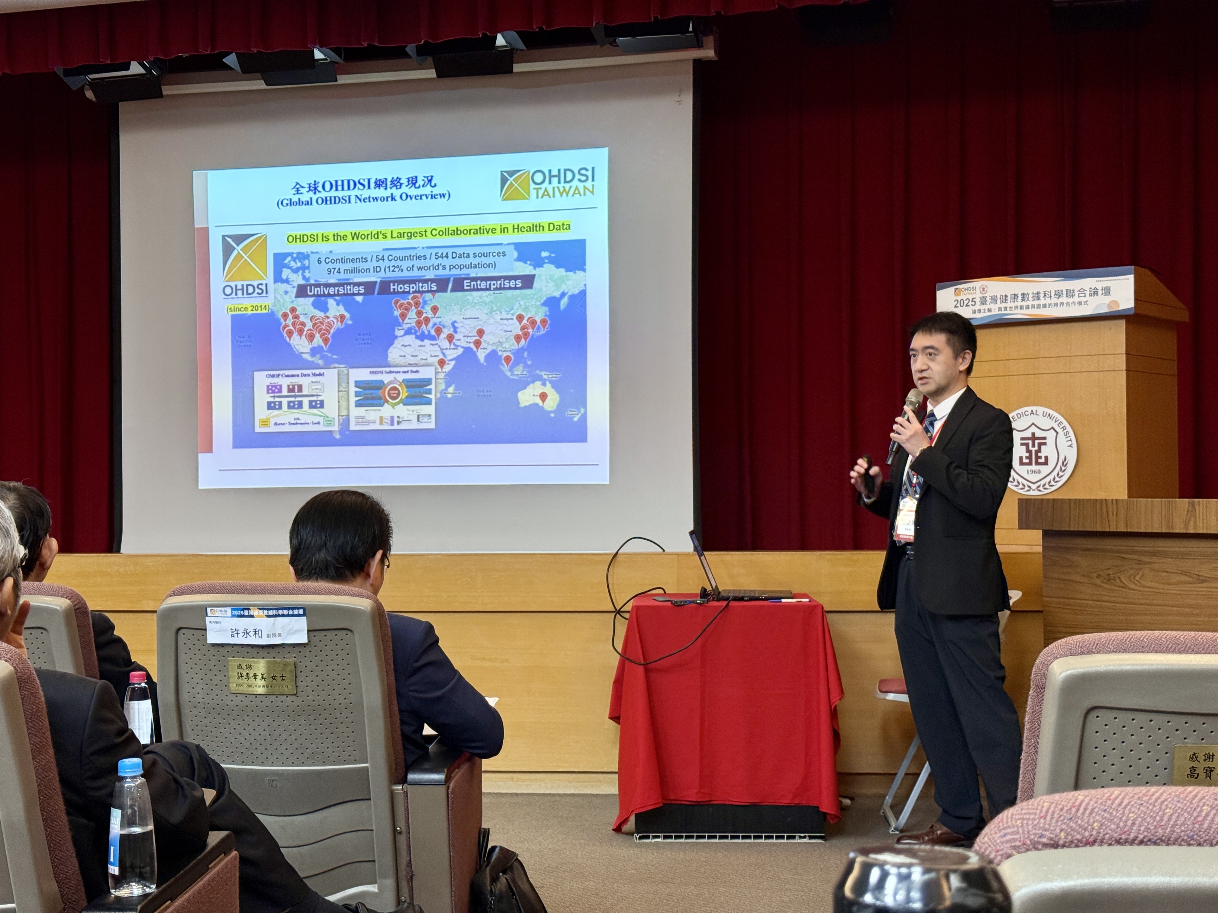 論壇理事長、臺北醫學大學徐之昇教授以「鏈結全球OHDSI,啟動臺灣健康數據新未來」為題發表專題演講,闡述全球OHDSI網絡的核心理念與台灣在其中的關鍵角色。徐教授指出,OHDSI以開放科學與協作為精神核心,透過透明、創新與可重現的研究模式,已成為全球健康資料科學的重要合作平台。台灣自加入OHDSI以來,不僅完成臨床資料的標準化與模型轉換,也積極參與跨國多中心研究,逐步建立與歐美及亞洲節點的深度合作關係。